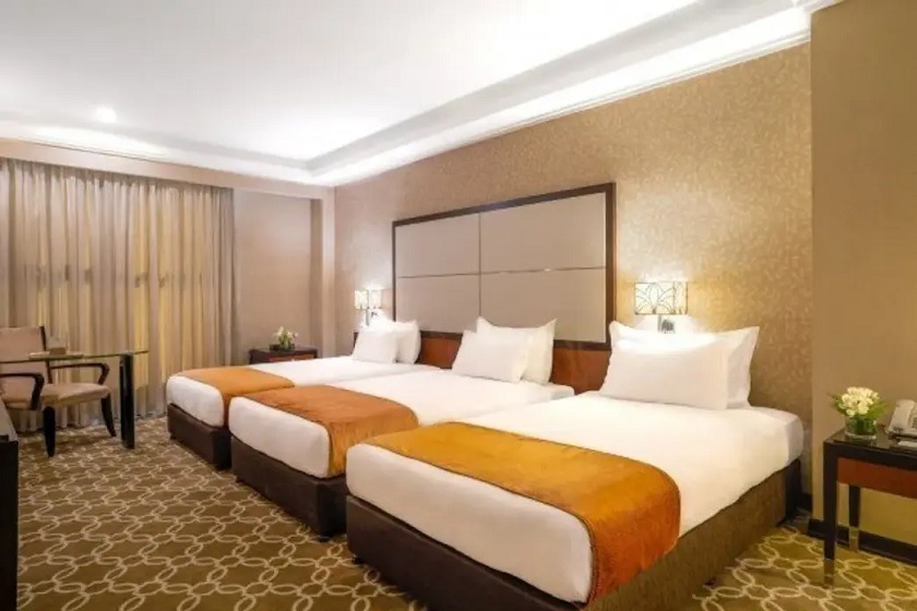 این اتاق با سه تخت سینگل، در طبقات ۳ تا ۱۰ هتل قرار دارد و افزودن تخت اضافه در این واحد امکانپذیر نیست. سیستم تهویه مطبوع، مبلمان، تلویزیون با کانالهای بینالمللی، صندوق امانات، چایساز، مینیبار با هزینه، اینترنت رایگان و حمام اختصاصی با لوازم بهداشتی و سرویس بهداشتی فرنگی از امکانات این اتاق سه نفره هستند. استعمال دخانیات در فضای داخلی اتاق ممنوع است.
